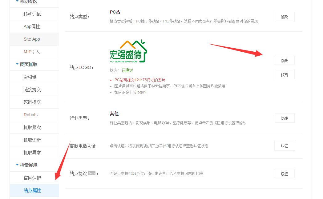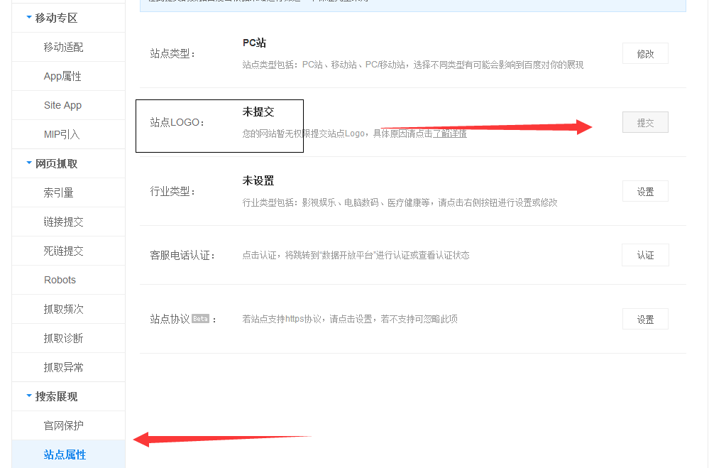 1.打开站长平台,找到站点属性,这是之前申请时候留下的截图!