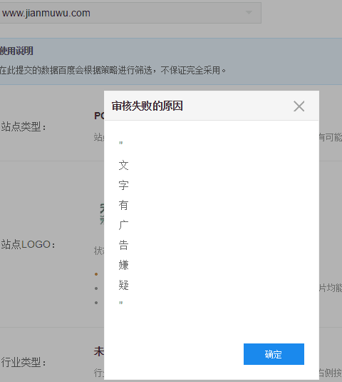 3.审核没有通过,会给你显示问题的所在,张图片的问题是logo文字有广告嫌疑!所以没有通过!